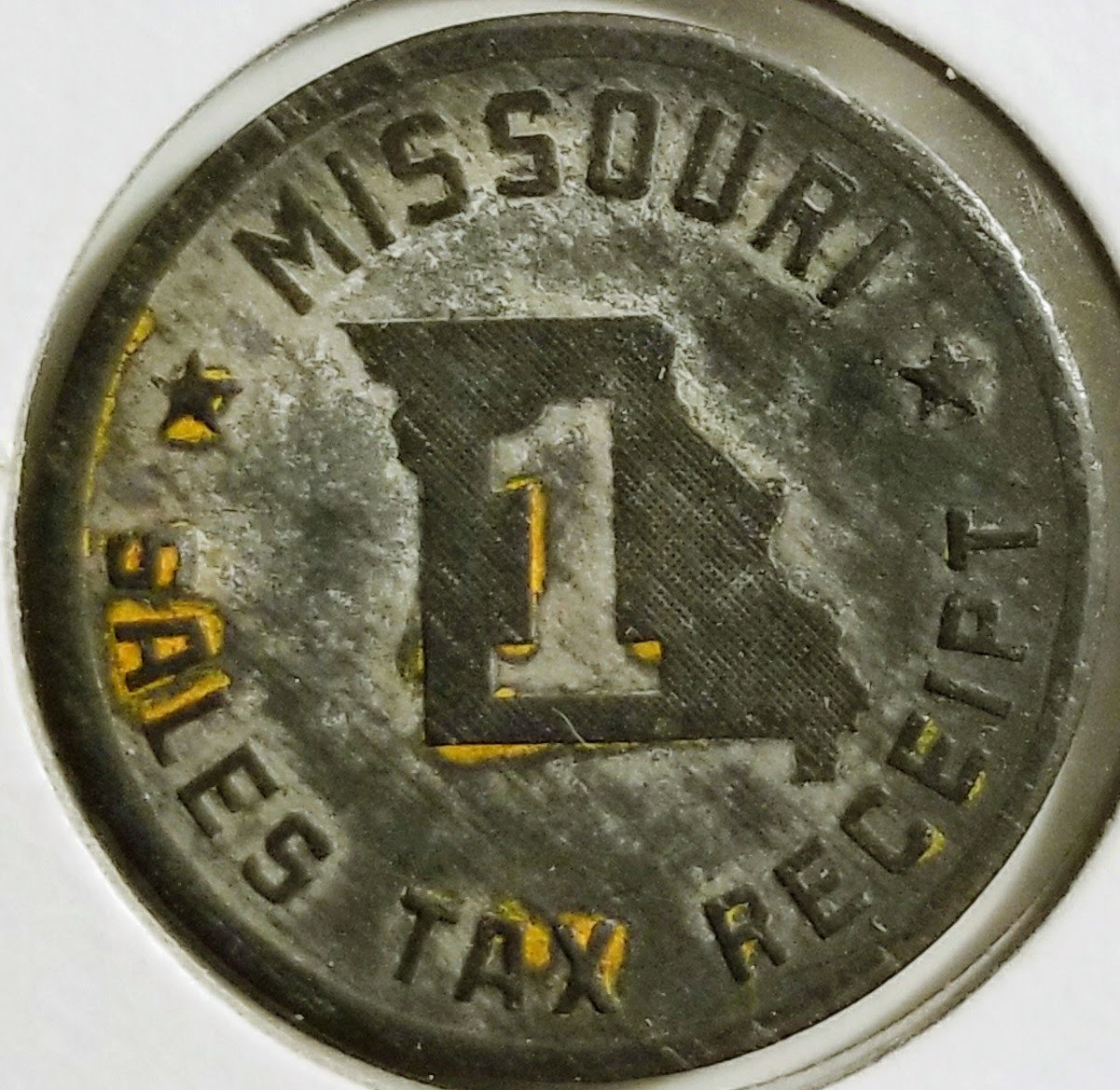 MISSOURI SALES TAX RECEIPT 5 5. Are Missouri sales tax receipt coins worth anything. These are usually rare.