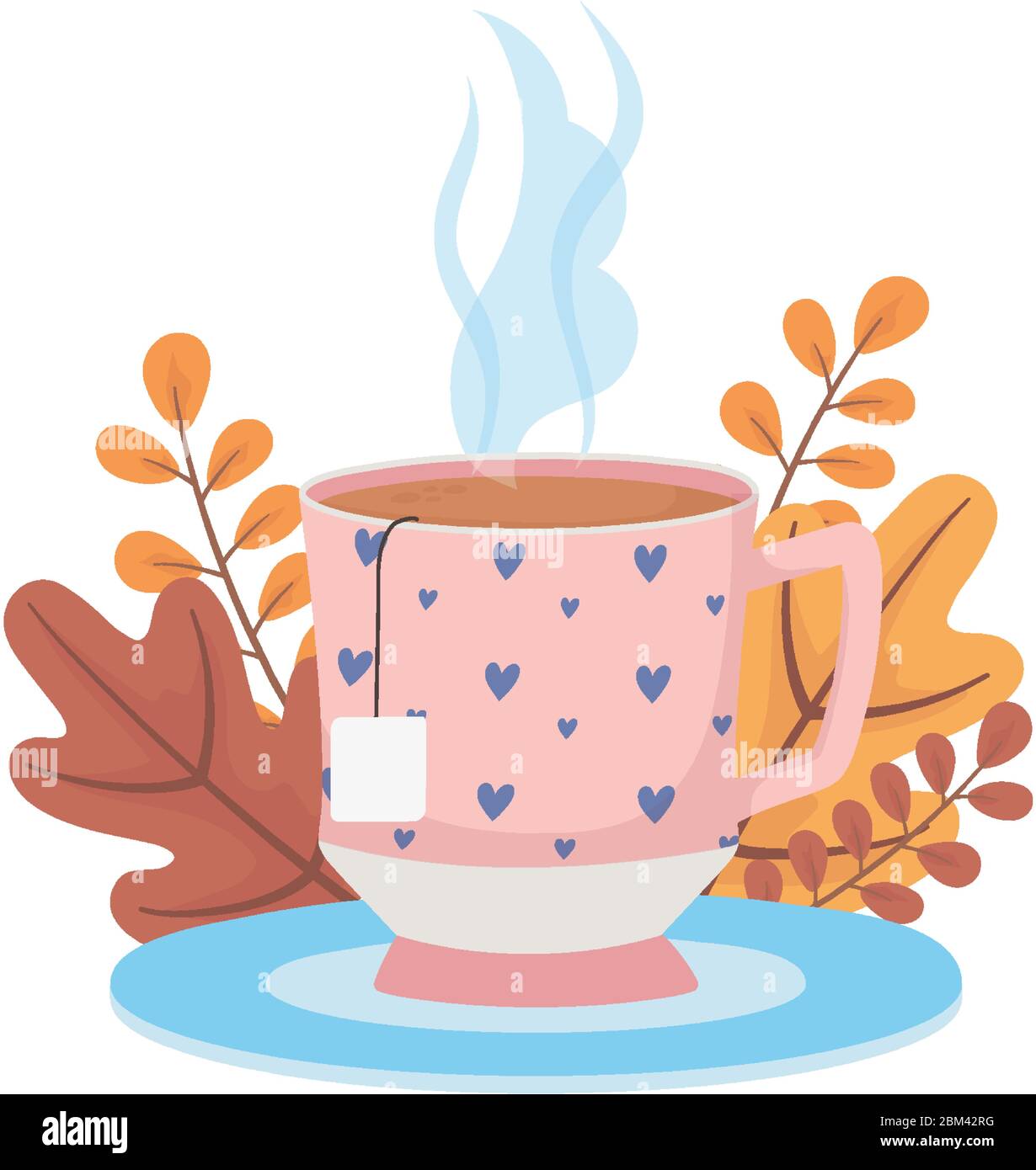 Coffee Time And Tea Cup Tea Bag On Dish Leaves Season Vector Illustration Stock Vector Image Art Alamy